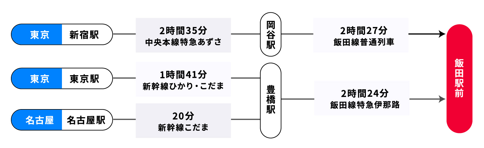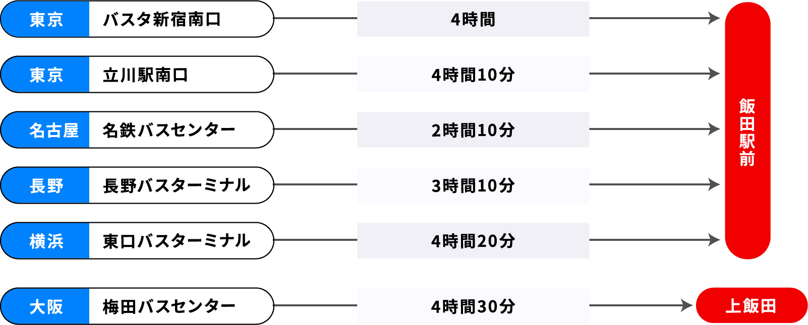 飯田まで乗換なしで移動できる高速バスは