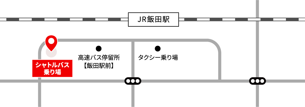 飯田駅前からはシャトルバス又はタクシー、