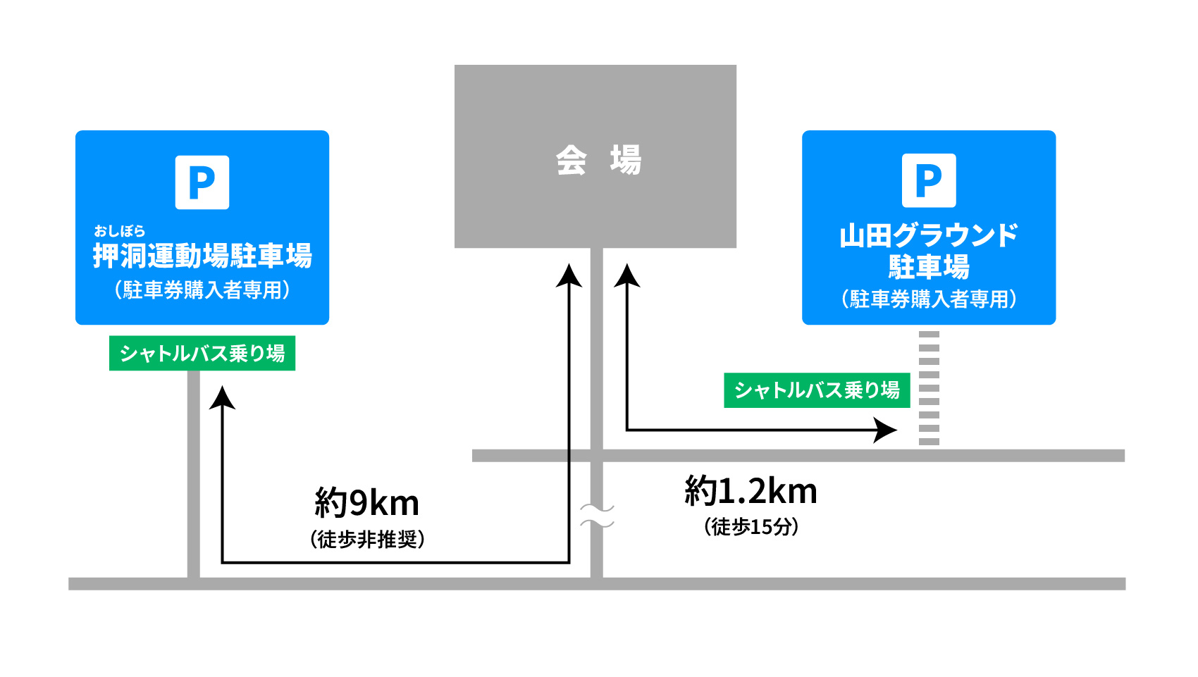 (山田グラウンド・押洞運動場↔会場)片道¥500(当日券¥500)